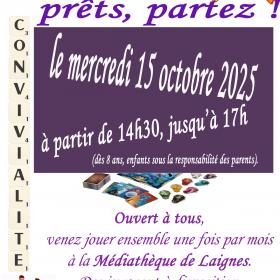 RDV le 15 octobre 2025 à la médiathèque, de 14h30 à 17h, pour venir jouer et découvrir des jeux de société.