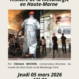 Clément Michon, conservateur-directeur du musée de Saint-Dizier et de Metallurgic Park viendra nous présenter "L'Histoire de la métallurgie en Haute-Marne : évolutions et mutations".
