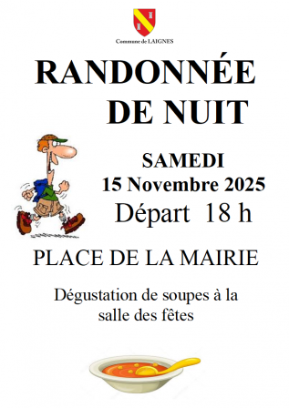 Petite randonnée de nuit, avec un départ de la mairie à 18h le samedi 15 novembre!