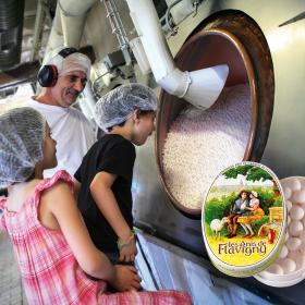 Vous apprendrez le parcours du sucre et de la graine d’anis jusqu’à Flavigny, petit village de Bourgogne, et ceci depuis l’Antiquité. Vous apprendrez comment étaient fabriquées les premières dragées. Déjà sous Henri IV (1591), les Anis de Flavigny étaient offerts aux hôtes de passage. Les Princes de Condé, le Chevalier d’Eon, la Marquise de Sévigné, Blanche de Castille les appréciaient… Saviez-vous que Louis XIV avait toujours une boîte d’anisse dans sa poche ?